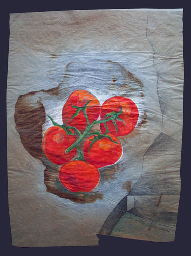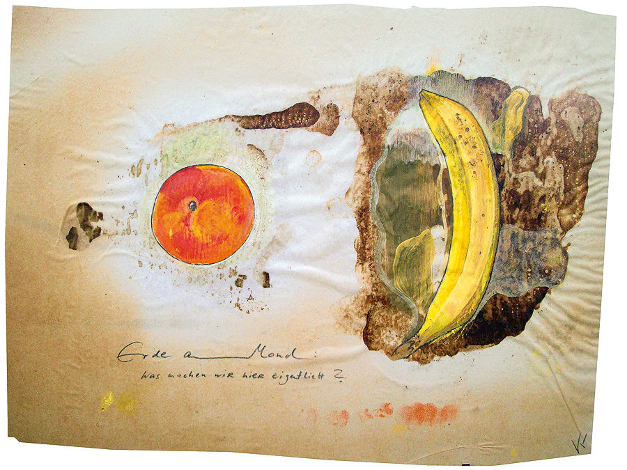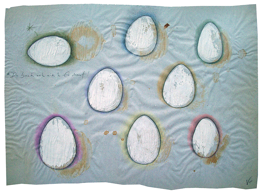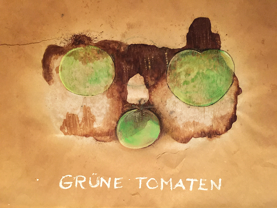 Optisch wirken die Arbeiten durch die verbrannten Spuren fast dreidimensdional und haben durch die Beanspruchung des Materials einen zerbrechlichen – fast mystischen Reiz. Inhaltlich geht es hier nicht ganz ohne Ironie und Humor – die "Küchenkunst" sendet auch essentielle Botschaften ... ;-)